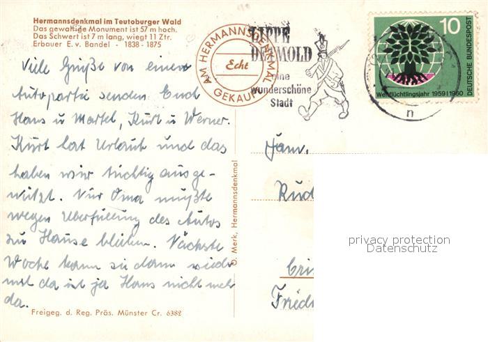 73121181 alte Postkarte Hermannsdenkmal Fliegeraufnahme Teutoburger-Wald postalisch gelaufen Erhaltung siehe scans [LiesaD40] KatCode: 11110005766020