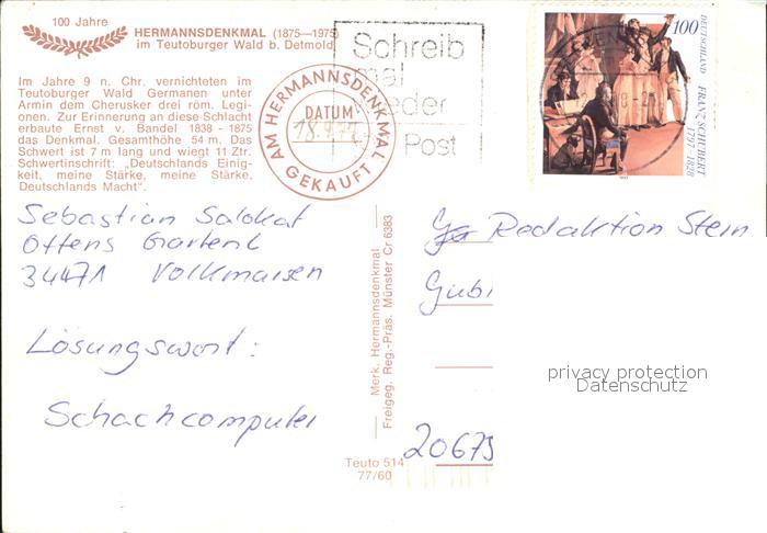 72032705 alte Postkarte Hermannsdenkmal im Teutoburger Wald Fliegeraufnahme postalisch gelaufen Erhaltung siehe scans KatCode: 11110005766020