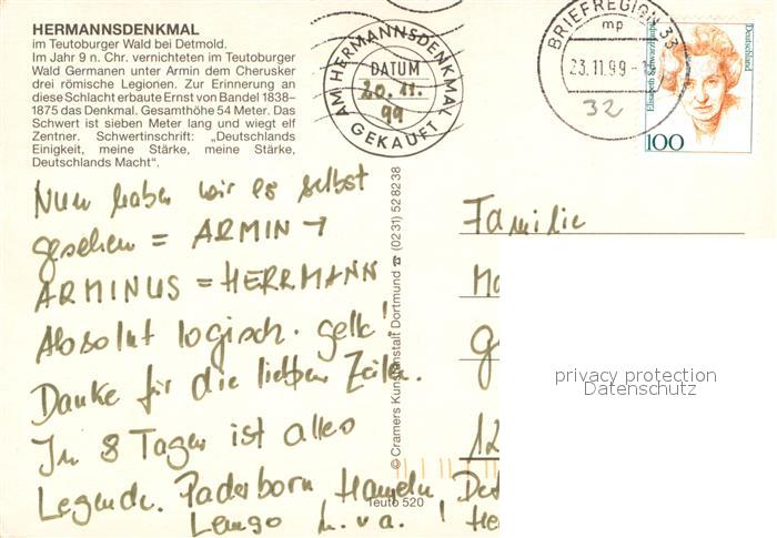 73747656 alte Postkarte Hermannsdenkmal im Teutoburger Wald mit Liedtext postalisch gelaufen Erhaltung siehe scans [WerneD78] KatCode: 11110005766020