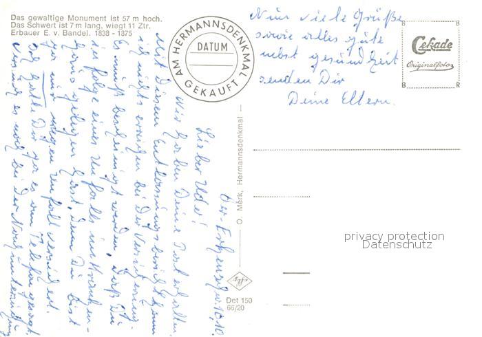 72985777 alte Postkarte Hermannsdenkmal mit Bandelhuette postalisch gelaufen Erhaltung siehe scans [WerneD78] KatCode: 11110005766020