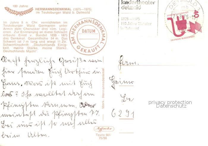 73152116 alte Postkarte Hermannsdenkmal Schloss Detmold Externsteine Lippische Schweiz postalisch gelaufen Erhaltung siehe scans [KathaD81] KatCode: 11110005766020