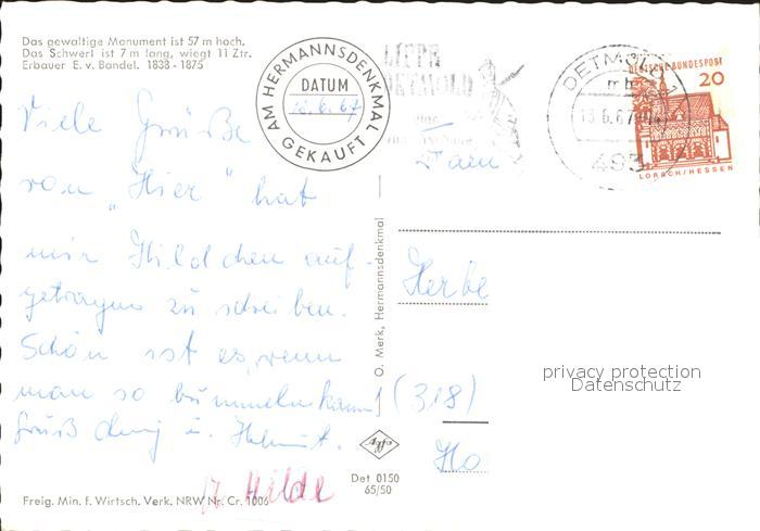 71894606 alte Postkarte Hermannsdenkmal Teutoburger Wald Fliegeraufnahme postalisch gelaufen Erhaltung siehe scans KatCode: 11110005766020
