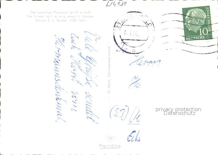 72405125 alte Postkarte Hermannsdenkmal Teutoburger Wald Fliegeraufnahme postalisch gelaufen Erhaltung siehe scans KatCode: 11110005766020