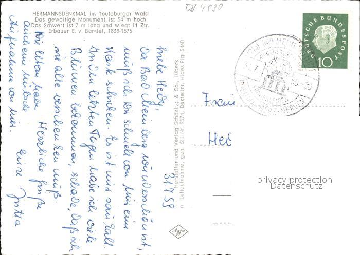 72405123 alte Postkarte Hermannsdenkmal Teutoburger Wald Fliegeraufnahme postalisch gelaufen Erhaltung siehe scans KatCode: 11110005766020