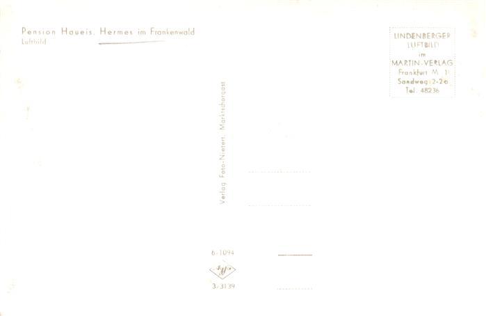 73960035 Hermes Marktleugast Franken Bayern Pension Haueis postalisch nicht gelaufen Fliegeraufnahme Erhaltung siehe scans [FriedD77] KatCode: 11110009477138