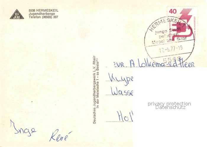 72664007 alte Postkarte Hermeskeil Jugendherberge Fachwerkhaus postalisch gelaufen Erhaltung siehe scans [FriedD77] KatCode: 11110007235045