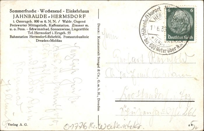 30727322 alte Postkarte Hermsdorf Erzgebirge Hermsdorf Osterzgebirge Jahnbaude postalisch gelaufen KatCode: 11110014290200