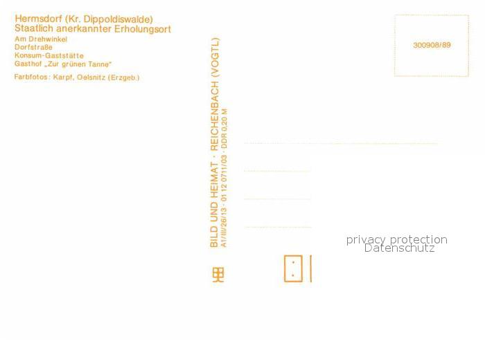 72616310 Hermsdorf Glashuette Drehwinkel Dorfstrasse Konsum Gaststaette Gasthof Zur gruenen Tanne postalisch nicht gelaufen Erhaltung siehe scans [FriedD77] KatCode: 11110014290150