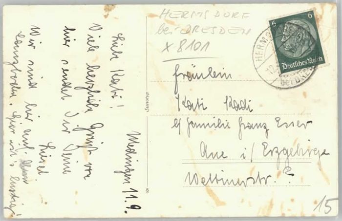 70029332 alte Postkarte Hermsdorf Ottendorf-Okrilla [Stempelabschlag] postalisch gelaufen KatCode: 11110014292415