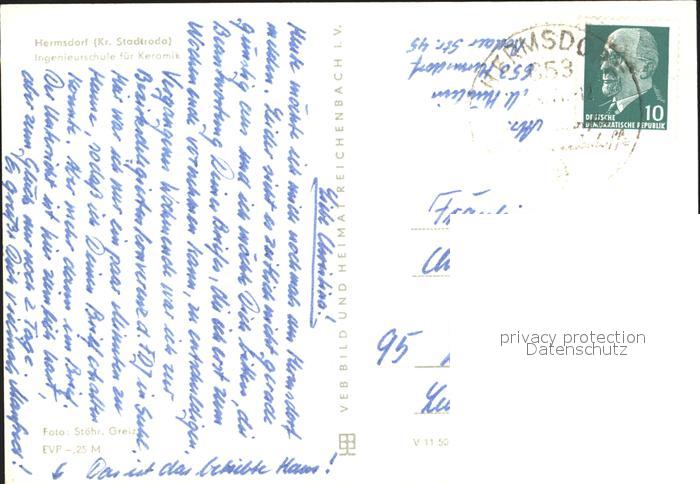 72060668 alte Postkarte Hermsdorf Sachsen Altenburg Ingenieurschule fuer Keramik postalisch gelaufen Erhaltung siehe scans KatCode: 11110016074041