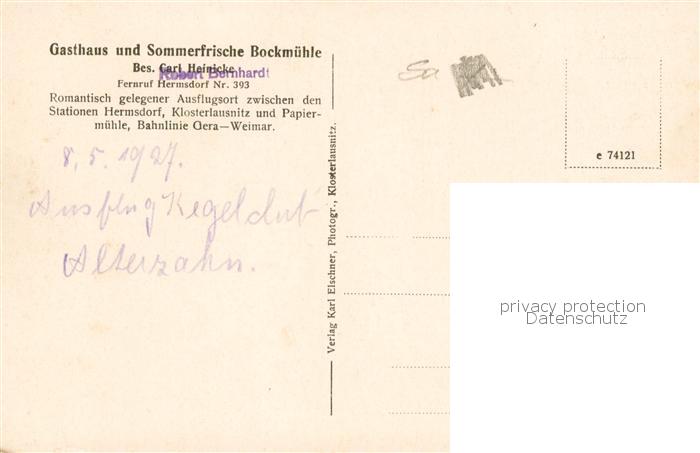 73820967 Hermsdorf Thueringen Die Bockmuehle postalisch nicht gelaufen Erhaltung siehe scans [FriedD77] KatCode: 11110016074041