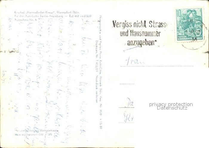 72055310 alte Postkarte Hermsdorf Thueringen Rasthof Hermsdorfer Kreuz an der Autobahn Berlin Nuernberg postalisch gelaufen Erhaltung siehe scans KatCode: 11110016074041