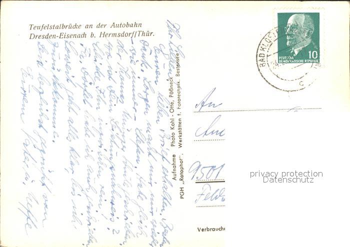 71967814 alte Postkarte Hermsdorf Thueringen Teufelsbruecke Autobahn postalisch gelaufen Erhaltung siehe scans KatCode: 11110016074041