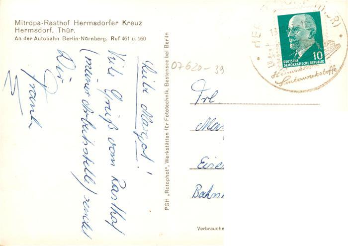 73904951 Hermsdorfer Kreuz Autobahn Schleifreisen Mitropa Rasthof Hermsdorfer Kreuz Gastraeume postalisch gelaufen Erhaltung siehe scans [WerneD78] alte Postkarte Wern Katcode 11110016074084