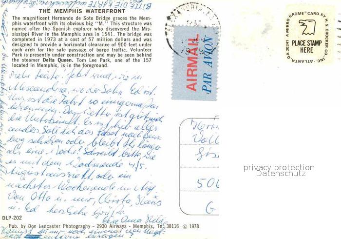 72915067 old postcard Hernando Florida The Memphis Waterfront postalisch gelaufen Erhaltung siehe scans [LiesaD40] KatCode: 14140110000000