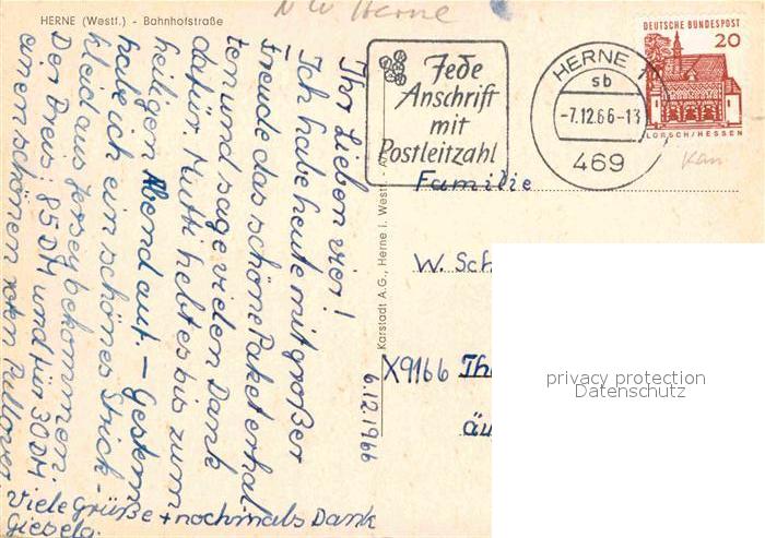 72885636 alte Postkarte Herne Westfalen Bahnhofstrasse postalisch gelaufen Erhaltung siehe scans [FriedD77] KatCode: 11110005916000