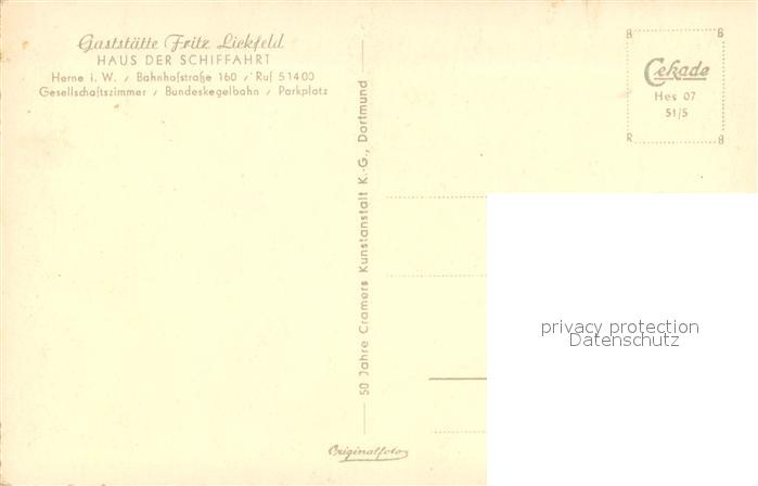 33703569 Herne Westfalen Gaststaette Fritz Lickfeld postalisch nicht gelaufen Erhaltung siehe scans [WerneD78] KatCode: 11110005916000