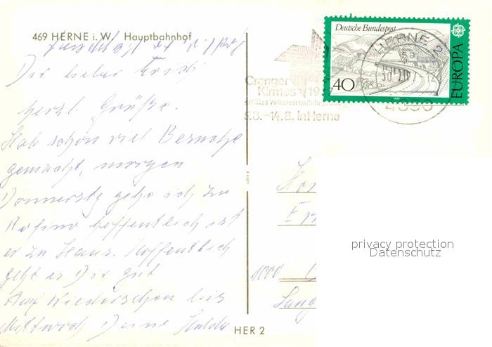 72885632 alte Postkarte Herne Westfalen Hauptbahnhof Springbrunnen postalisch gelaufen Erhaltung siehe scans [FriedD77] KatCode: 11110005916000