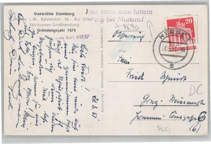 40684257 Herne Westfalen Herne Gaststätte Stemberg Konzertsaal KatCode 11110005916000