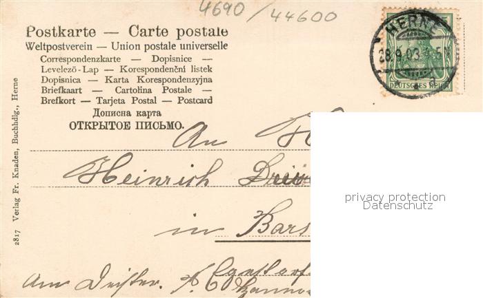 73690057 alte Postkarte Herne Westfalen Kaiser Wilhelm Denkmal postalisch gelaufen Erhaltung siehe scans [FriedD77] KatCode: 11110005916000