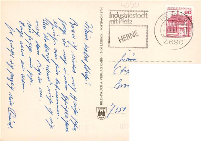 73936318 alte Postkarte Herne Westfalen Kirche Gondelteich Fussgaengerzone postalisch gelaufen Erhaltung siehe scans [WerneD78] KatCode: 11110005916000