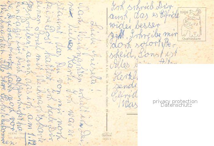 72885637 Herne Westfalen Partie am Bahnhof Springbrunnen postalisch nicht gelaufen Erhaltung siehe scans [FriedD77] KatCode: 11110005916000