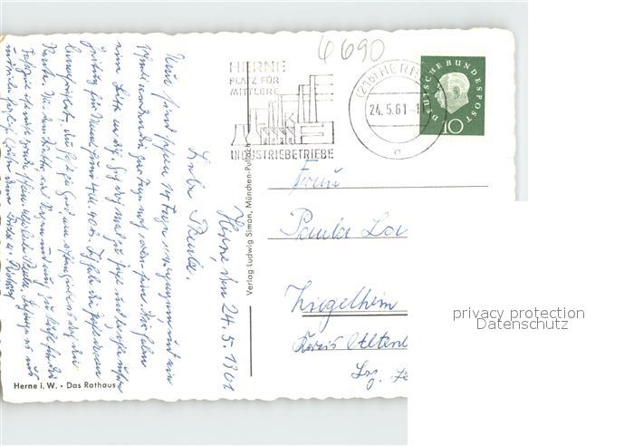 72078817 alte Postkarte Herne Westfalen Rathaus postalisch gelaufen Erhaltung siehe scans KatCode: 11110005916000