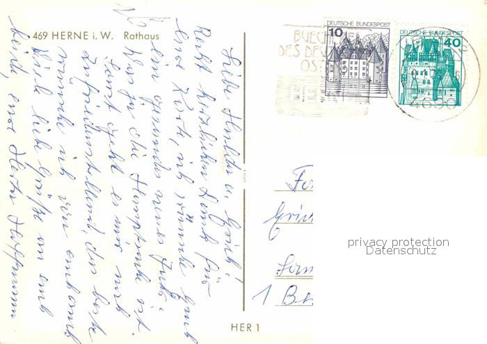 72885638 alte Postkarte Herne Westfalen Rathaus postalisch gelaufen Erhaltung siehe scans [FriedD77] KatCode: 11110005916000