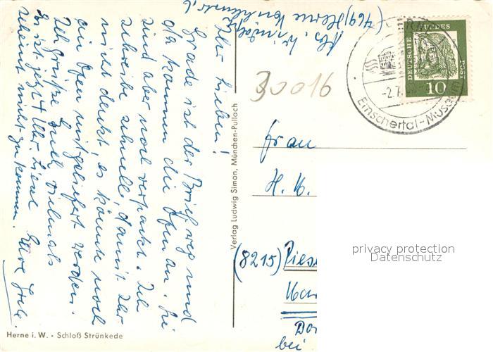 73734707 alte Postkarte Herne Westfalen Schloss Struenkede postalisch gelaufen Erhaltung siehe scans [WerneD78] KatCode: 11110005916000