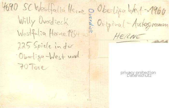 73748686 Herne Westfalen Willy Overdieck Portrait SC Westfalia Herne postalisch nicht gelaufen Erhaltung siehe scans [WerneD78] KatCode: 11110005916000