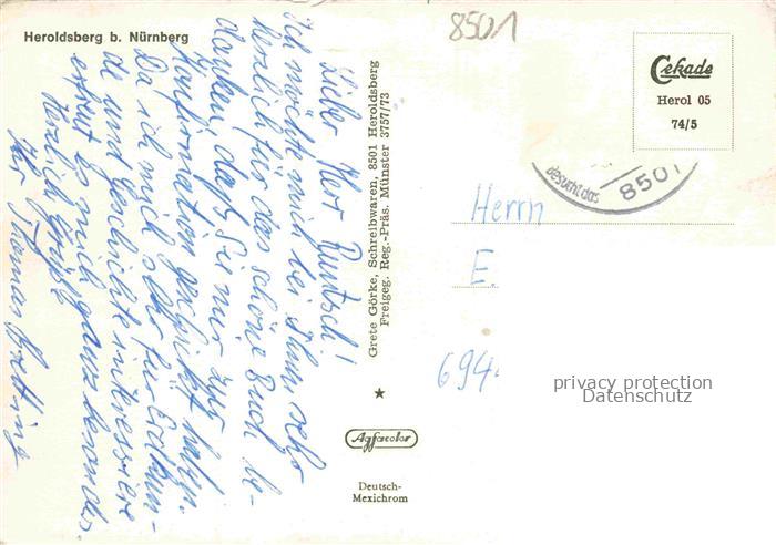74035450 alte Postkarte Heroldsberg Erlangen-Hoechstadt Nuernberg Bayern Fliegeraufnahme postalisch gelaufen Erhaltung siehe scans [WerneD78] KatCode: 11110009572131