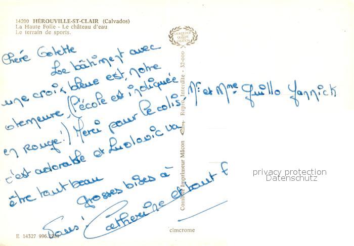 13330172 Herouville-Saint-Clair Le Chateau d’eau Le terrain de sports Vue aerienne postalisch nicht gelaufen Erhaltung siehe scans [WerneD78] KatCode: 11170014214327