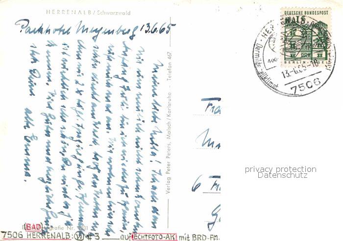 72797678 alte Postkarte Herrenalb Bad Herrenalb postalisch gelaufen Erhaltung siehe scans [NatalD47] KatCode: 11110008235033