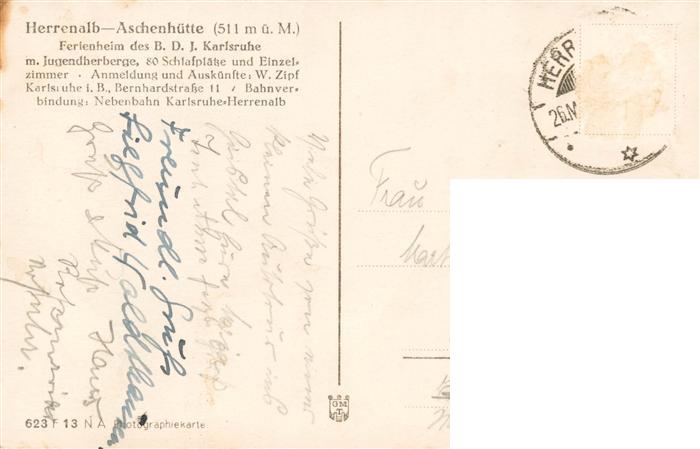 73937323 alte Postkarte Herrenalb Bad Herrenalb Aschenhuette postalisch gelaufen Erhaltung siehe scans [FriedD77] KatCode: 11110008235033