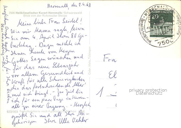 72052671 alte Postkarte Herrenalb Bad Herrenalb Blick von Rotensoler Steige postalisch gelaufen Erhaltung siehe scans KatCode: 11110008235033