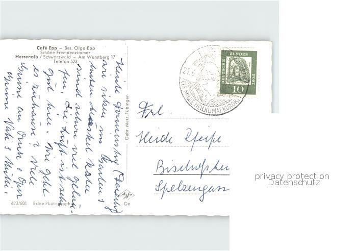 72181243 alte Postkarte Herrenalb Bad Herrenalb Cafe Epp postalisch gelaufen Erhaltung siehe scans KatCode: 11110008235033