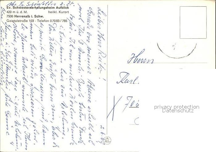 72504914 alte Postkarte Herrenalb Bad Herrenalb Evangelisches Schwesternerholungsheim Aufblick postalisch gelaufen Erhaltung siehe scans KatCode: 11110008235033
