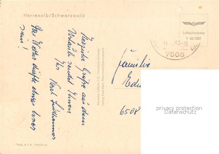 73744118 alte Postkarte Herrenalb Bad Herrenalb Fliegeraufnahme postalisch gelaufen Erhaltung siehe scans [FriedD77] KatCode: 11110008235033