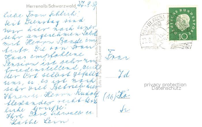 73115287 alte Postkarte Herrenalb Bad Herrenalb Fliegeraufnahme postalisch gelaufen Erhaltung siehe scans [NatalD47] KatCode: 11110008235033