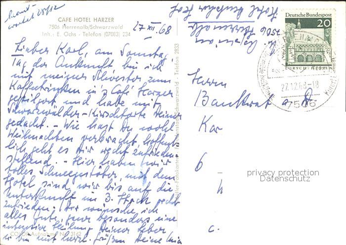 72504441 alte Postkarte Herrenalb Bad Herrenalb Hotel Harzer postalisch gelaufen Erhaltung siehe scans KatCode: 11110008235033