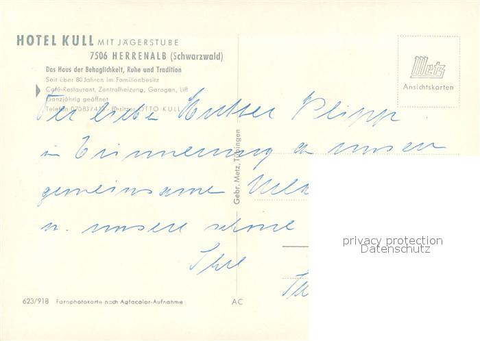 73615730 Herrenalb Bad Herrenalb Hotel Kull mit Jaegerstube postalisch nicht gelaufen Erhaltung siehe scans [WerneD78] KatCode: 11110008235033