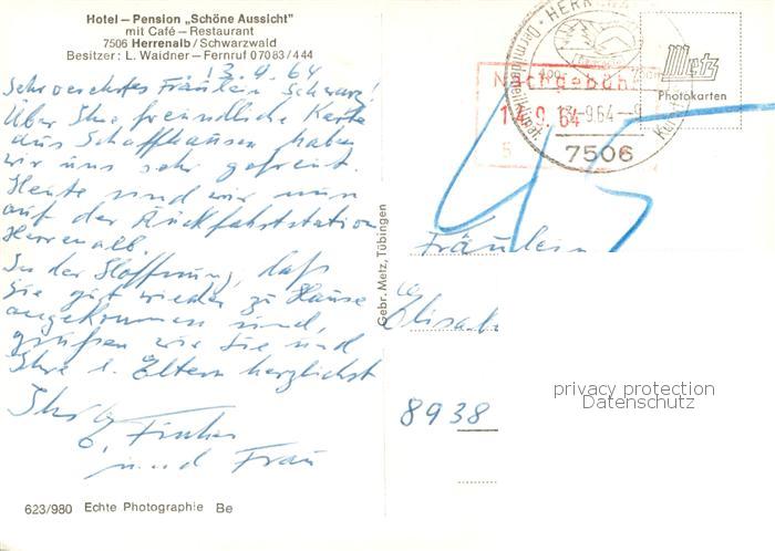 73771958 alte Postkarte Herrenalb Bad Herrenalb Hotel Pension Schoene Aussicht postalisch gelaufen Erhaltung siehe scans [WerneD78] KatCode: 11110008235033