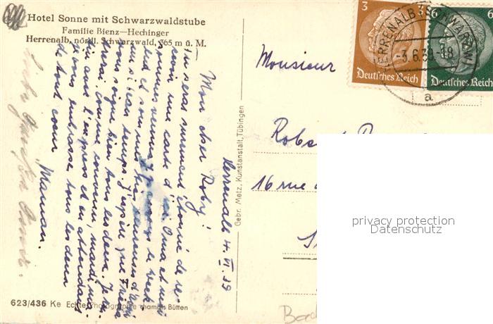 43505299 alte Postkarte Herrenalb Bad Herrenalb Hotel Sonne Schwarzwaldstube postalisch gelaufen Erhaltung siehe scans [KathaD81] KatCode: 11110008235033