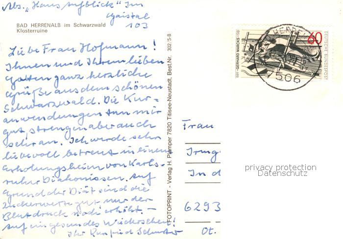 73151990 alte Postkarte Herrenalb Bad Herrenalb Klosterruine postalisch gelaufen Erhaltung siehe scans [KathaD81] KatCode: 11110008235033