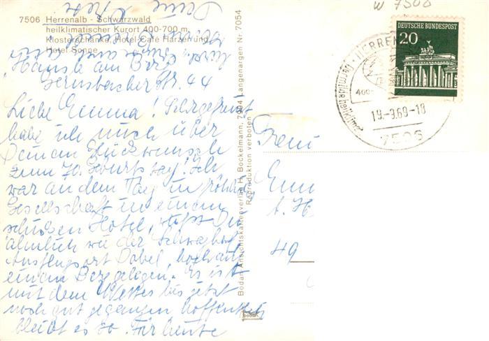 73900542 alte Postkarte Herrenalb Bad Herrenalb Klosterschaenke Hotel Cafe Herzer und Hotel Sonne postalisch gelaufen Erhaltung siehe scans [WerneD78] KatCode: 11110008235033