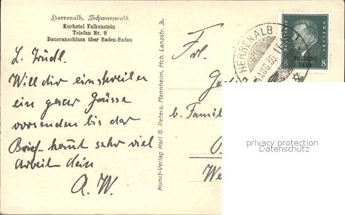 41994290 alte Postkarte Herrenalb Bad Herrenalb Kurhotel Falkenstein postalisch gelaufen Erhaltung siehe scans KatCode: 11110008235033
