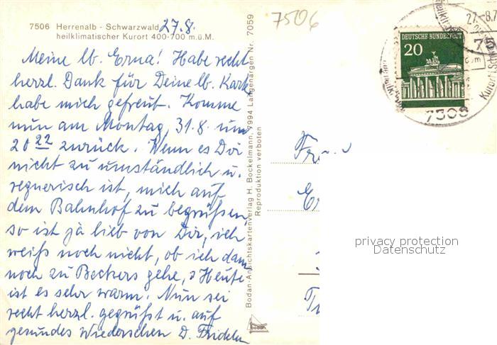 72846450 alte Postkarte Herrenalb Bad Herrenalb Kurpark Kuranlagen postalisch gelaufen Erhaltung siehe scans [KathaD81] KatCode: 11110008235033
