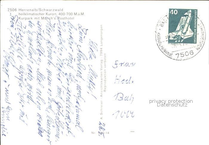 72563318 alte Postkarte Herrenalb Bad Herrenalb Kurpark Moenchs Posthotel postalisch gelaufen Erhaltung siehe scans [AndreD76] KatCode: 11110008235033