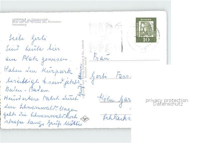 71998383 alte Postkarte Herrenalb Bad Herrenalb Mayenberg Parkhotel postalisch gelaufen Erhaltung siehe scans KatCode: 11110008235033