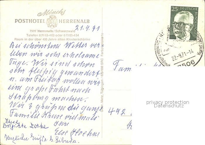 72523704 alte Postkarte Herrenalb Bad Herrenalb Moenchs Posthotel postalisch gelaufen Erhaltung siehe scans KatCode: 11110008235033